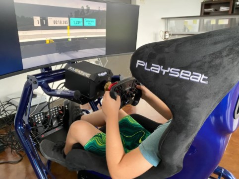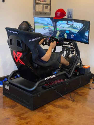 There are 2 options to choose from the one featured here is a Playseat powered by a Zotac Gaming PC with wide screen monitor & top of the range Fanatec pedals, steering and base that also work with the Xbox version.